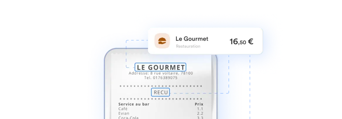 La reconnaissance visuelle extrait les éléments essentiels. Photographiez vos reçus, l’application génère automatiquement les notes de frais.